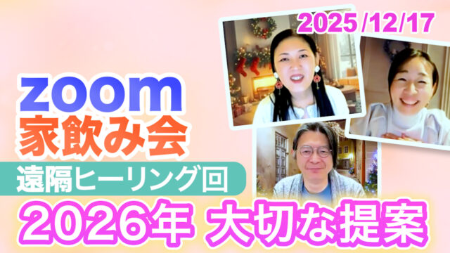 ライブ見逃し配信 12月17日Zoom家飲み会♪ 遠隔ヒーリング回「2026年 大切な提案」見逃し配信のお知らせ 2025年12月19日 yoshihiro_t https://reiki-online.jp/wp-content/uploads/2020/09/japanreikilogo.png NPO法人 日本レイキ協会 オンラインサロン レイキスタ