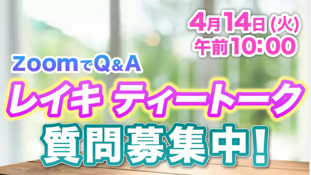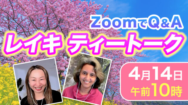 ライブ配信 ★zoom入室情報★4月14日のレイキ ティー トーク with ナスリン&マスミ ★ “Reiki Tea Talk“(見逃しあります!) 2026年4月14日 yoshihiro_t https://reiki-online.jp/wp-content/uploads/2020/09/japanreikilogo.png NPO法人 日本レイキ協会 オンラインサロン レイキスタ