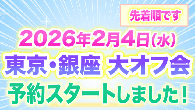 オフ会 ただ今より予約開始します!◆2026年2月4日「目覚めた人の場」を作りたい!◆ 東京・銀座でオフ会を開催します 2025年11月12日 yoshihiro_t https://reiki-online.jp/wp-content/uploads/2020/09/japanreikilogo.png NPO法人 日本レイキ協会 オンラインサロン レイキスタ