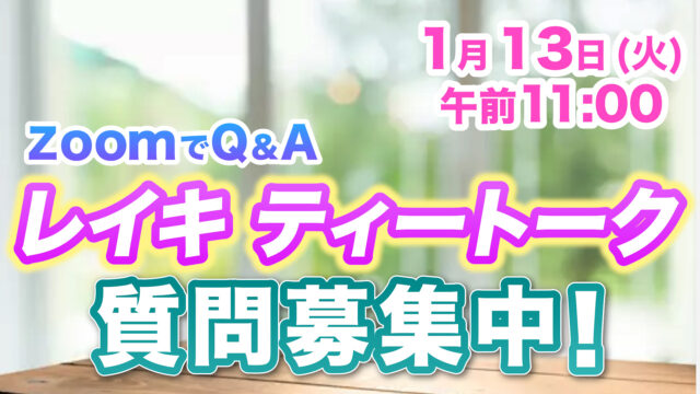 ライブ配信 ★zoom入室情報★1月13日のレイキ ティー トーク with ナスリン&マスミ ★ “Reiki Tea Talk“(見逃しあります!) 2026年1月13日 yoshihiro_t https://reiki-online.jp/wp-content/uploads/2020/09/japanreikilogo.png NPO法人 日本レイキ協会 オンラインサロン レイキスタ